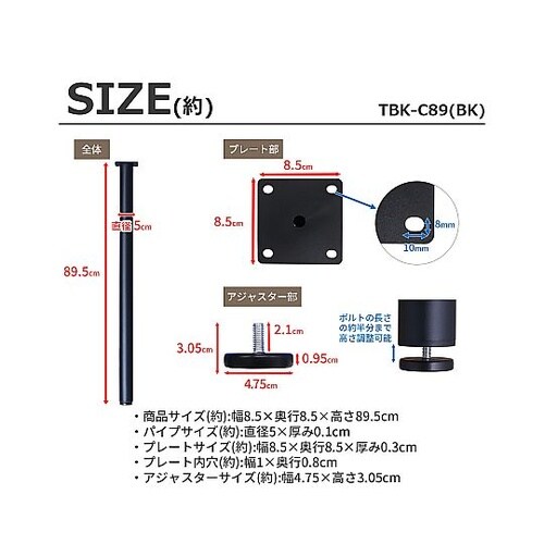 テーブル丸脚 8.5×8.5×89.5cm ブラック 1セット(4本入) TBK−C89 BK