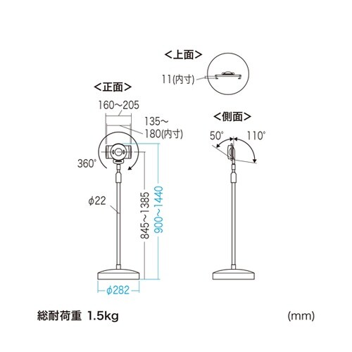 iPad mini、iPad、iPad Air、iPad Pro・タブレット用スタンドです。使用する高さに合わせて上下に調節でき、任意の位置で固定することができます。 |