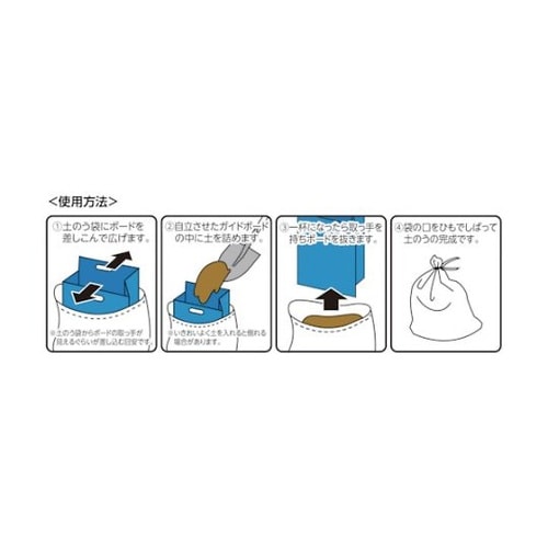 土のう袋に挿入して広げるだけで自立させることができるので、一人でも土のう袋への土詰め作業ができます。折りたためるので収納にもスペースをとりません。取手付で土詰め作業のあと簡単に引き抜くことができます。 |