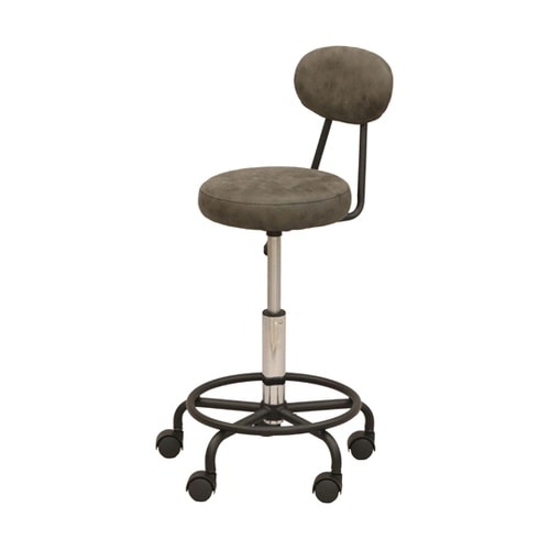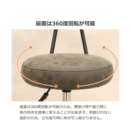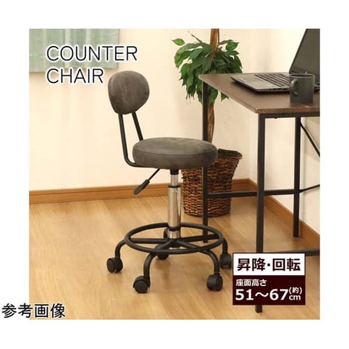 背もたれあり、昇降機能付き、回転機能付き、キャスター付き、カウンターチェアです。カラーは座面と背もたれのグレー×支柱のシルバー×脚部のブラック。 |