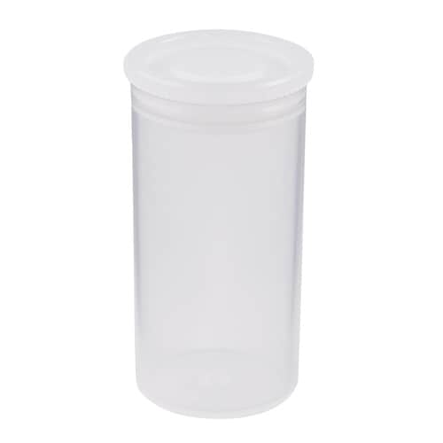 少量のサンプル保存に便利な円筒状で、フタは押し込み式です。 |