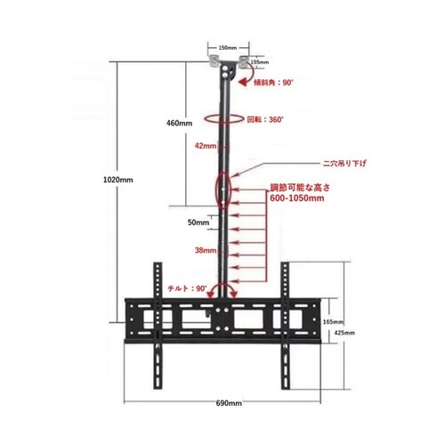 モニター天吊り掛け金具(VESA規格、角度調整、42−80型対応、LED・LCD対応) BS−MH19−KR