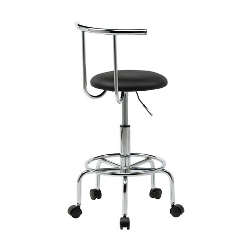背中をやさしく支える背もたれ付きで、持ち運びの時に持ち手としても使用できます。座面の上下調節可能なガス圧リフト装置付きです。360°どこからでも使えるフットレスト付きで、足がぶらつきません。 |