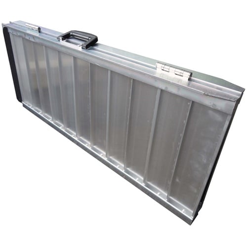 折り畳んで収納できるアルミ製の簡易スロープ。 |