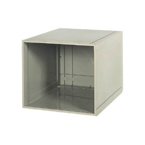 ビジネスカセッターのボディーには連結用のミゾがつけられています。A3判が収納できるボックスタイプです。引出タイプでは使いづらい所(高い位置など)用に。※オープンタイプです。 |