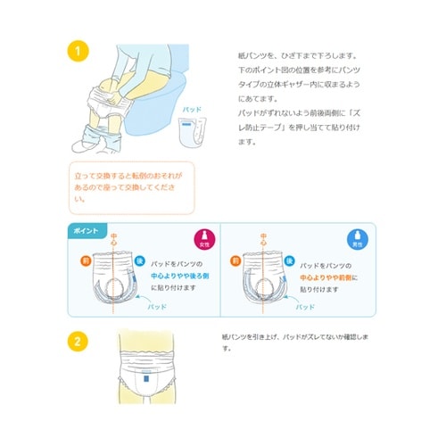 片手でも開きやすい簡単装着何度でも付け直しができる前後2箇所付の「ぴったりフィットテープ」採用ハイフィットギャザーと地下水路機能によりモレを防止します。 |
