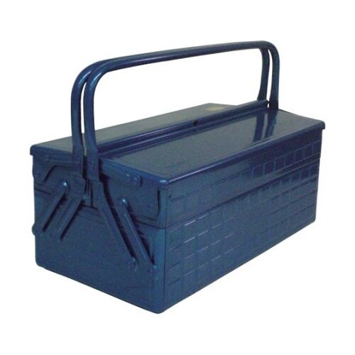 角はすべて丸味をつけ、使う人に優しい設計です。収容力が大きく、丈夫な両開き開閉式工具箱です。中皿のパーツ仕切りは取り外し移動できます。 |