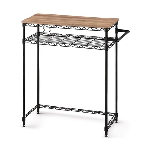 ペール上の無駄なスペースを有効活用できるロータイプのラックです。調理時の一時置きやストック品、調理器具、レシピブックなどの置き場としても活用できます。木天板はデザイン木目でアクセントをプラスします。 |