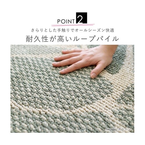 4人掛けダイニングテーブルに適したサイズのラグ。大胆なリーフデザインがダイニングルームをさりげなく演出します。裏面は耐熱加工の為ホットカーペットカバー、床暖房にも対応しています。 |
