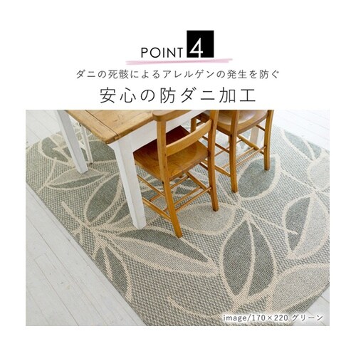防ダニ ダイニングラグ ラインリーフ 170×220 ベージュ 13462776