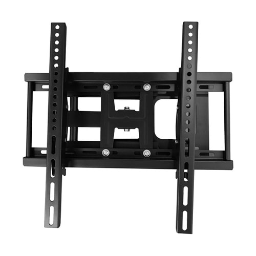モニター壁掛け金具。シンプルで取付やすい。【角度調節機能】上下に+15°/−15°、スイベルも180°調節可能なので、椅子でも床でもリラックスして、見ることができるようにちょうどよい角度に調節可能。 |