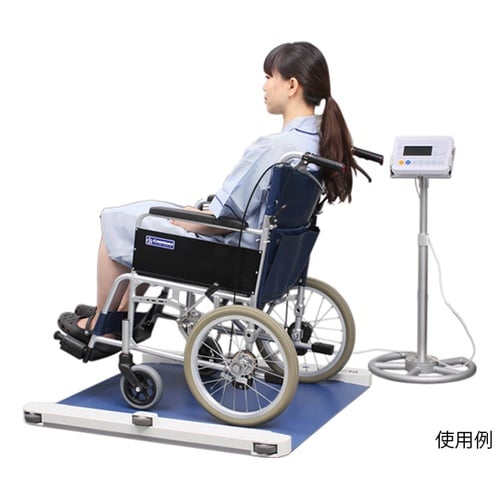 測定台までの高さが約24mmの薄型で乗り降りしやすく、両側昇降が可能です。移動に便利なキャスター付きです。RS−232Cポート(出力専用)付き。 |