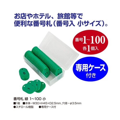 お店やホテル、旅館等で便利な番号札(番号入 小サイズ)。1ー100番が入っています。長年お客様から支持していただいているロングセラーアイテム。 |