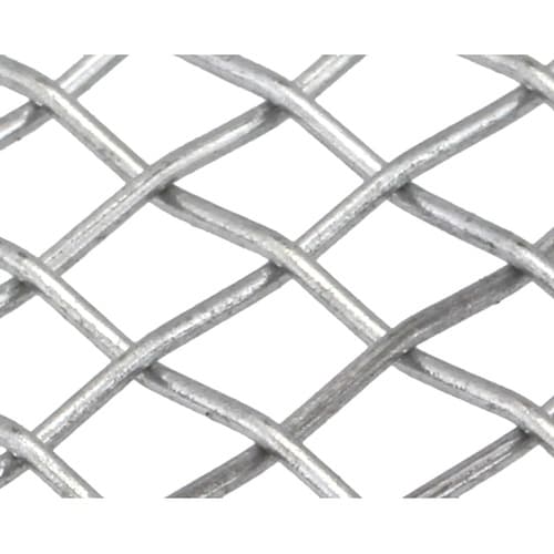 鉄線に亜鉛メッキが施された平織り金網です。縦線と横線が一定の間隔を保ち1本づつ交互に交わった基本的な織り方。平織金網は、農業、鉱業、食品製造、理化学用など多様な分野で使用されています。 |