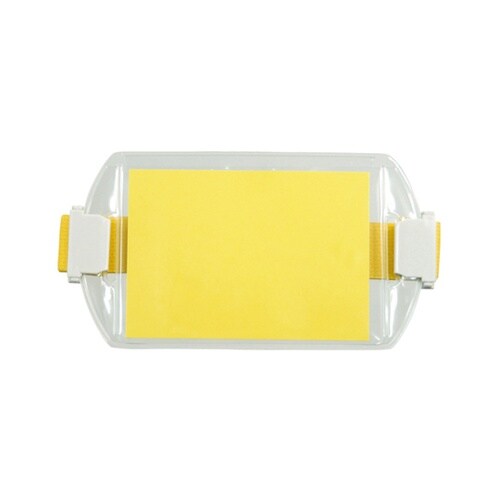 多くのユーザーから支持をいただいている腕章名札の決定版。名刺が入ります。雨や雪の日でもOK。防水フラップ付。カラーゴムベルトでしっかりフィット。5色展開。色分類も可能。