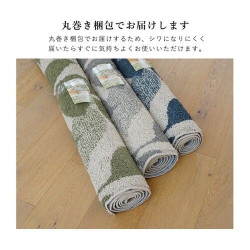 大胆なリーフ柄をショートパイルシャギーでタフトで表現。防音性能で階下に音が響くのを和らげます。ご家庭の洗濯機で丸洗い可能。 |