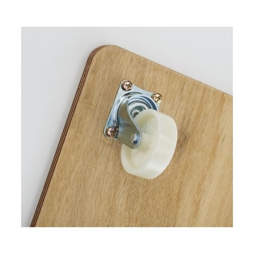 木製合板にナイロンキャスターを取り付けているため重量が軽く持ち運びに便利です。取手穴付(短手)。ナイロンキャスターは再生ナイロン100%を使用しています。 |