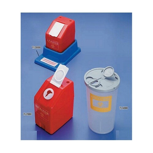 各種注射器及び真空採血管を使用する現場で注射針を安全に片手で回収できます。一般シリンジ、真空採血管、ロック式シリンジ、歯科用シリンジ用注射針処理容器で、約400本の針が入ります。 |