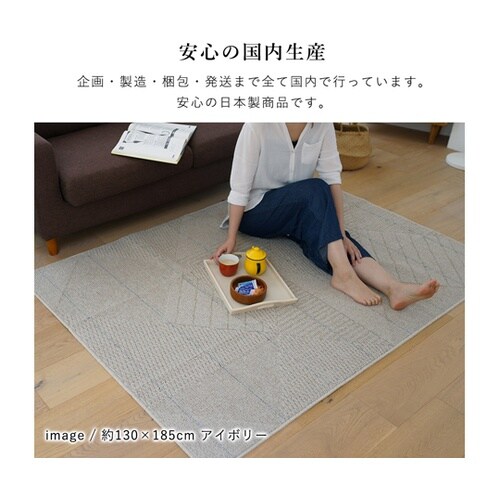 洗えるタフトラグ。幾何学模様を高低差のある織り方で表現したラグ。ご家庭の洗濯機で洗え、ホットカーペットカバーとしてもご使用頂けます。ご家庭の洗濯機で洗う場合は、洗濯ネットに入れてください。