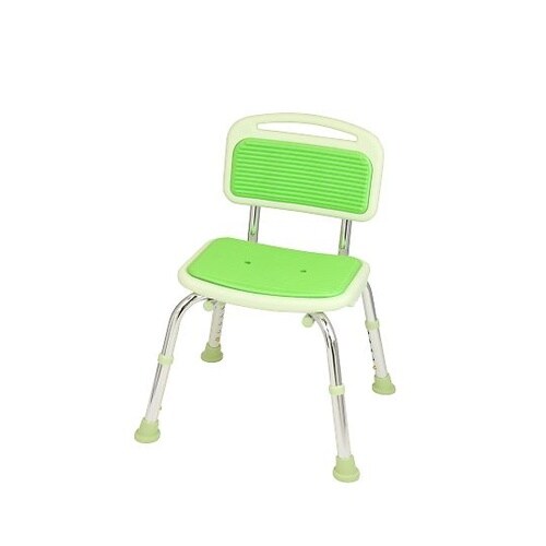 座面高さ5段階調節、コンパクト設計、背もたれ有りのシャワーチェア。 |
