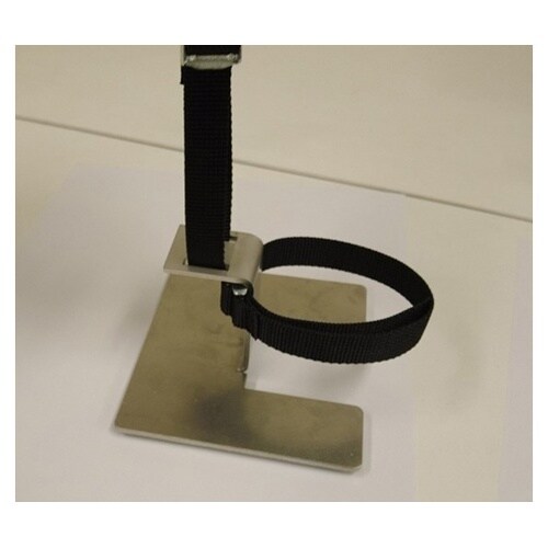 金具底面部分に耐震マットが付いており粘着力と2本のベルトでズレと転倒を防止します。耐震マット自体に強粘着力を有しているので、対象物にも、設置面にも穴開け不要で地震対策が行えます(アンカーレス工法)。 |