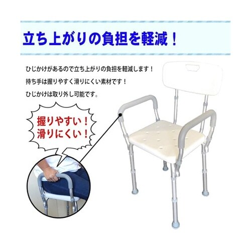 ひじ掛け付きシャワーチェア 背もたれ調高対応 SR−SBC019KD