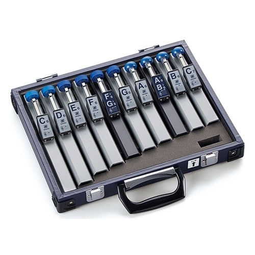お試しにオススメ。だれでもかんたんに、みんなで演奏できる、トーンチャイムの音あそび向けセットです。c3ーc4の幹音8音と、派生音f#3・bb3の計10音。 |