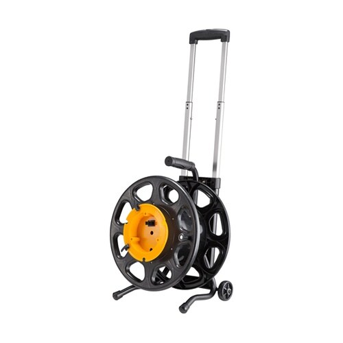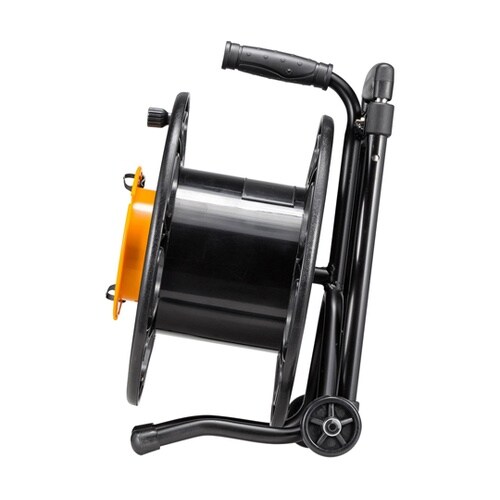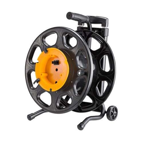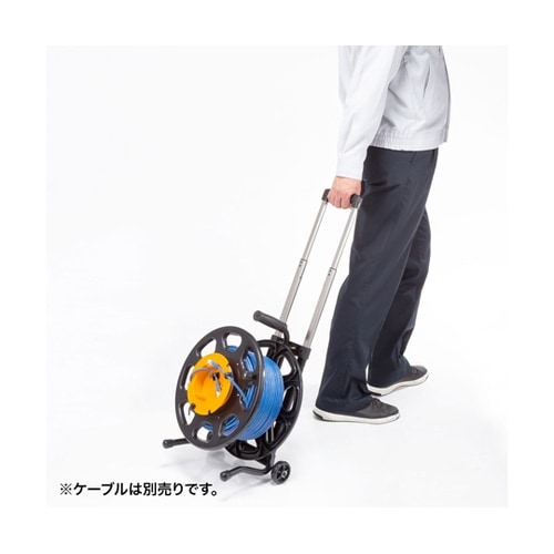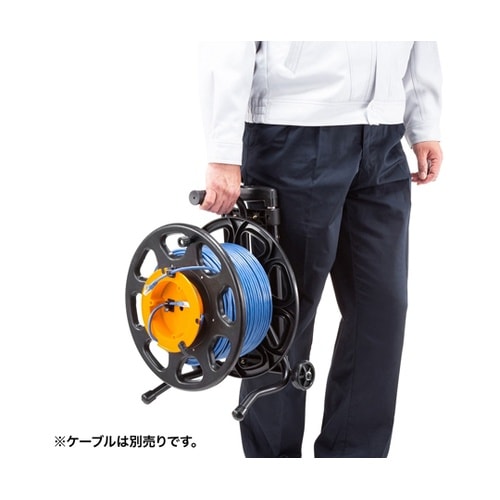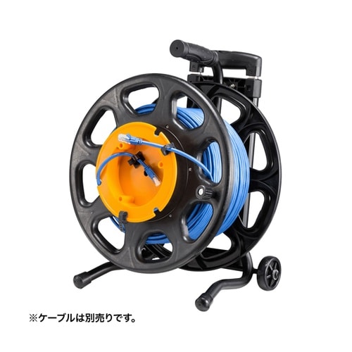 光ケーブル、LANケーブル、同軸ケーブルを巻き取りできます。大型径のケーブルリールで、6.0mm径ケーブルを200m巻取り可能です。 |