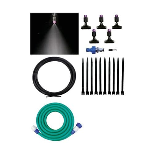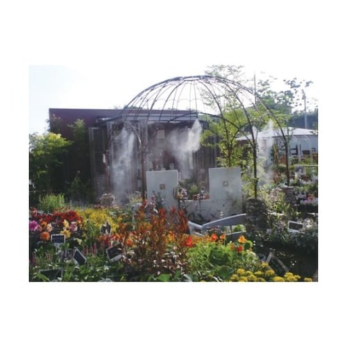 電源不要、水道圧力で手軽にミストをお楽しみ頂けます。畜産農家、畜舎、大型倉庫、工場、イベント会場、仮設テントなどに。 |