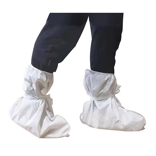 作業者を有害物質から保護します。SMS素材のエコノミータイプです。履き口のゴムの締まりが液体や粉じんの侵入を防ぎます。ひもで縛れるため、ずり落ちやダブつきを軽減します。 |