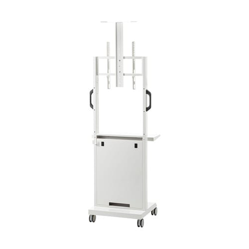 32型ー55型までのディスプレイの搭載が可能です。奥行きを最小限に抑えた、スリム型のディスプレイスタンドです。ミーティングデスクの端部への設置やデジタルサイネージのスタンドとして最適です。 |