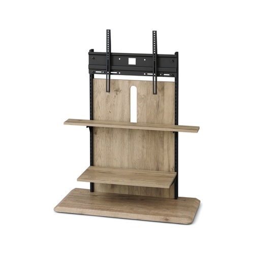 お部屋の空間を有効活用でき、お部屋になじみやすい木目調デザインでおしゃれなインテリアにもなるスタンドテレビ台です。棚板・テレビ本体は、お好みに合わせて細かく高さ調節できます。 |