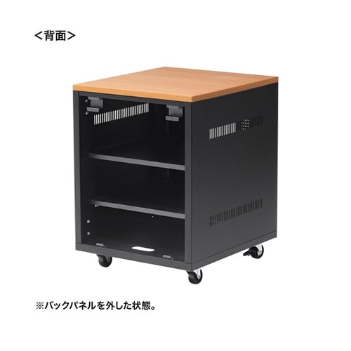 様々な機器の収納に便利です。オフィスの隅などに設置できるので、空間をムダなく使えます。前扉、側面、背面にはスリットがあり、通気性をアップさせています。