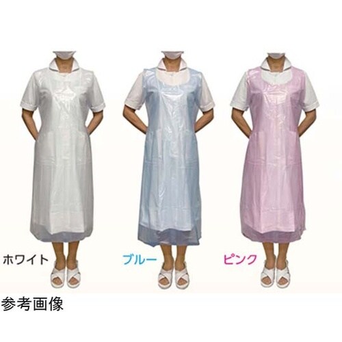 ポリエチレン素材のため防水性があり、血液、体液等を通さず感染リスクの軽減が図れます。まとわりつきにくいエンボス加工を施しています。頭からかぶるデザインで、腰ひもはうしろ結びです。 |