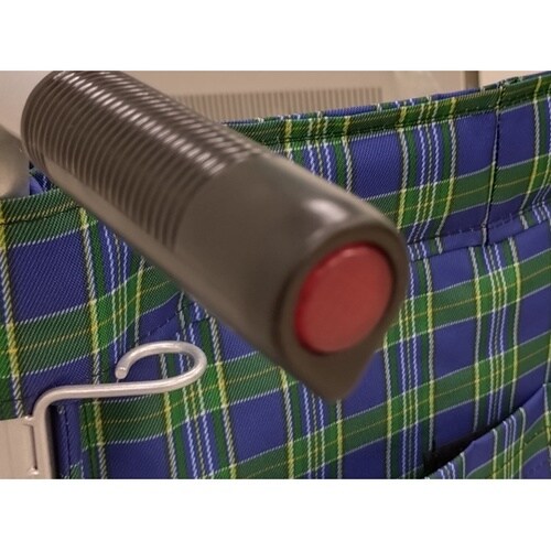 スチール製の自走式車いすです。ノーパンクタイヤ仕様です。ガートル棒付きです。 |