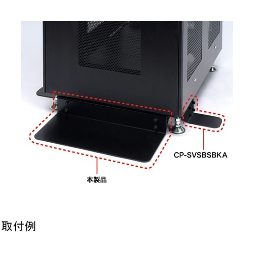 ラック本体の転倒防止にご使用ください。床面にしっかりと接地するようにボルト留め位置はスライドするようになっています。下面にはゴム板を貼っています。 |
