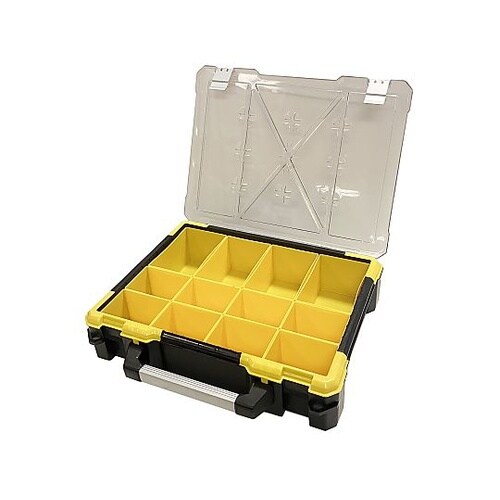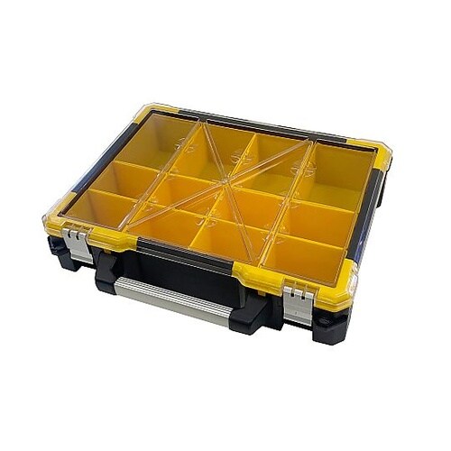 取っ手付きで持ち運びがしやすいです。半透明ケースのため中身が分かりやすいです。大きさの違うブロックで作業用パーツが仕分けしやすいです。 |