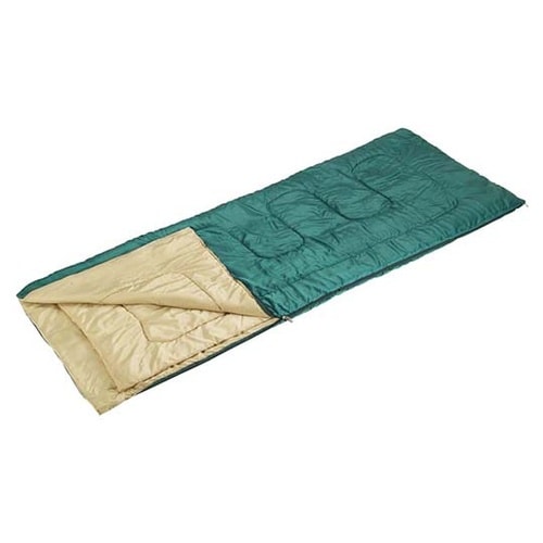 暑い時には、襟元や足元を開いて使用できます。フルジッパー使用なので、広げればダブルサイズになります。 |