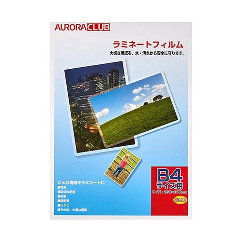B4サイズ(厚み100ミクロン)のラミネートフィルム。お徳用の100枚入り。写真、POP、メニュー等のラミネートに最適。 |