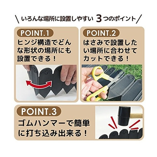 芝の根どめや花壇づくりが簡単にできます。直線やコーナー、曲線の場所もラクラク囲むことができ、自由な形で花壇作りが楽しめます。はさみでお好みの長さにカットできます。 |