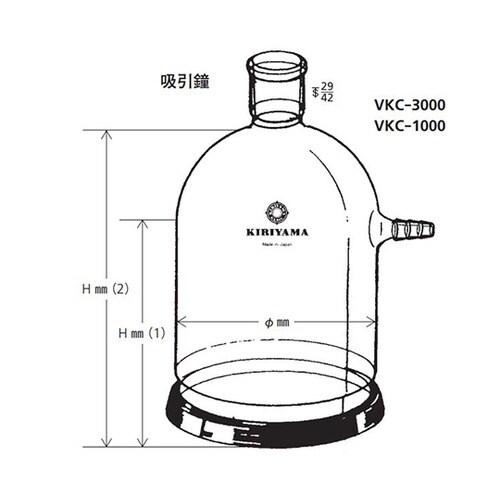 ガラス円板は別売です。各寸法は「桐山吸引鐘ベルジャー寸法表」をご覧下さい。 |