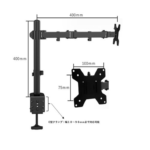 シングルモニタークランプ式アームスタンド(VESA規格、17−27型対応、LED・LCD対応) BS−MH27−KR