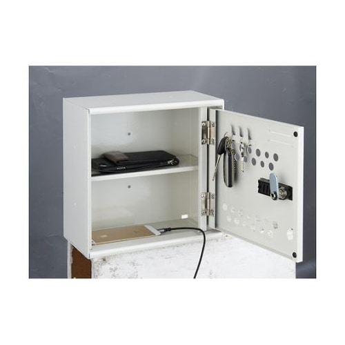 少人数事務所のセキュリティ管理に適してます。扉の隙間から携帯電話やスマートフォンの充電用ケーブルを通すことができるので、扉を閉めても充電が可能です。 |