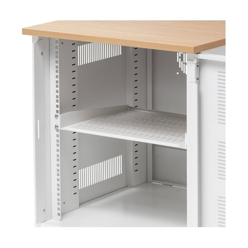 EIA規格の19インチラックに装着可能です。スリット付きのため放熱効果があります。ハブやルーターなどの小型の機種の設置に適しています。 |