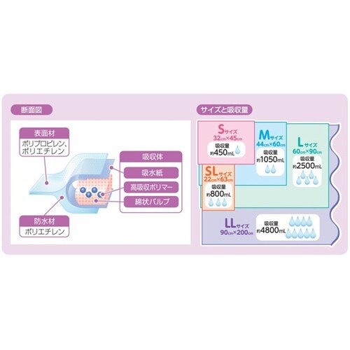 多目的に使用できる吸水性に優れたディスポーザブルタイプのマットです。高吸収ポリマーが素早くたっぷり吸収し、逆戻りを防ぐため、さらっとした表面状態を保ちます。 |