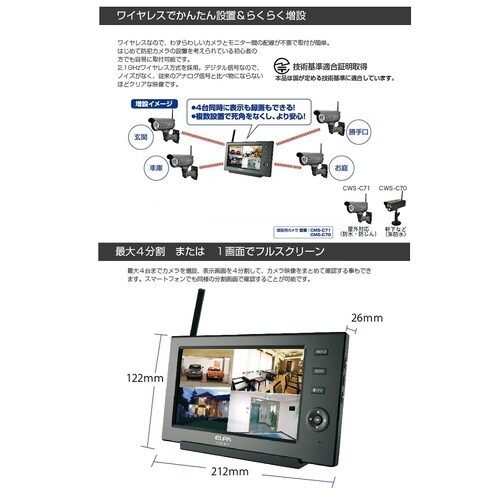 ワイヤレスカメラモニターセット CMS−7110