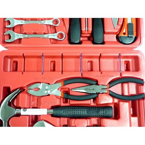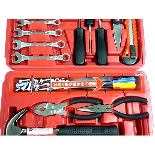 一家に1台。ご家庭でのDIY作業に適した工具セット。ボルト・ナットや工具類の一時収納に使えるスペースあり。 |
