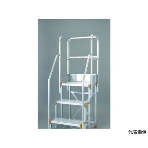 アルミ製作業用踏台の専用の手すりです。階段手すり、天場側両面手すりは左右どちらでも取り付け可能です。作業用踏台からの落下防止に。 |
