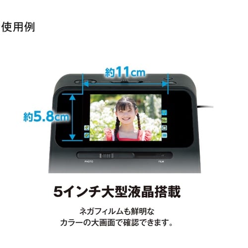 写真もフィルムもデジタルデータ化できるスキャナーです。大型5インチ液晶モニター搭載で、ネガフィルムもカラーで鮮明に映し出します。 |