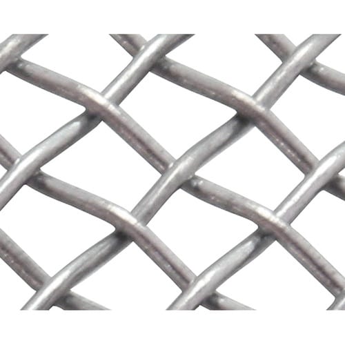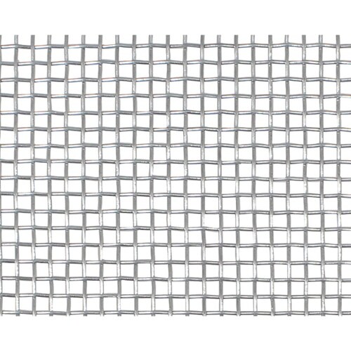 鉄線に亜鉛メッキが施された平織り金網です。縦線と横線が一定の間隔を保ち1本づつ交互に交わった基本的な織り方。平織金網は、農業、鉱業、食品製造、理化学用など多様な分野で使用されています。 |